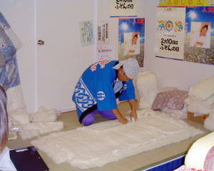 | 寝具技能士は、労働省の認定する国家資格です。受験には実務経験が必要で、 試験は筆記と実技に分かれています。 実技試験では、1級・2級とも、それぞれに課せられた製作課題を、 決められた時間内に 仕上げる能力が問われます。 |