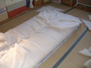 以上で敷き布団の綿の台張り作業は、終りです。