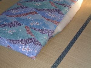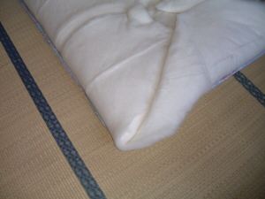 口くけ終了後、敷き布団を裏返してのしつけ作業を行います。