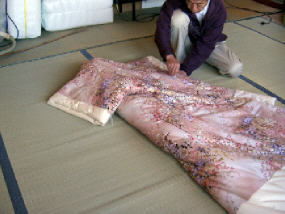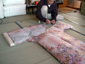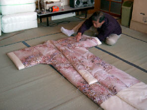 すべて綴じが終わりました。 残りの作業は、肩当てと衿を 付ければ終了です。