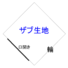 まず右ひざを立てた状態で自分の前に座布団生地を左口開き右が輪になるように置きます。