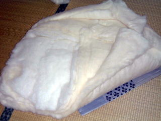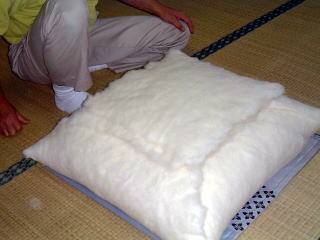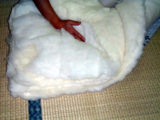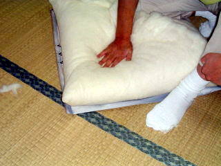 この状態で座布団の綿作りは、終了です。