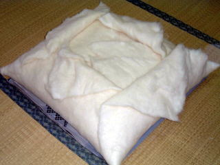 一番上の綿を写真のように広げます。